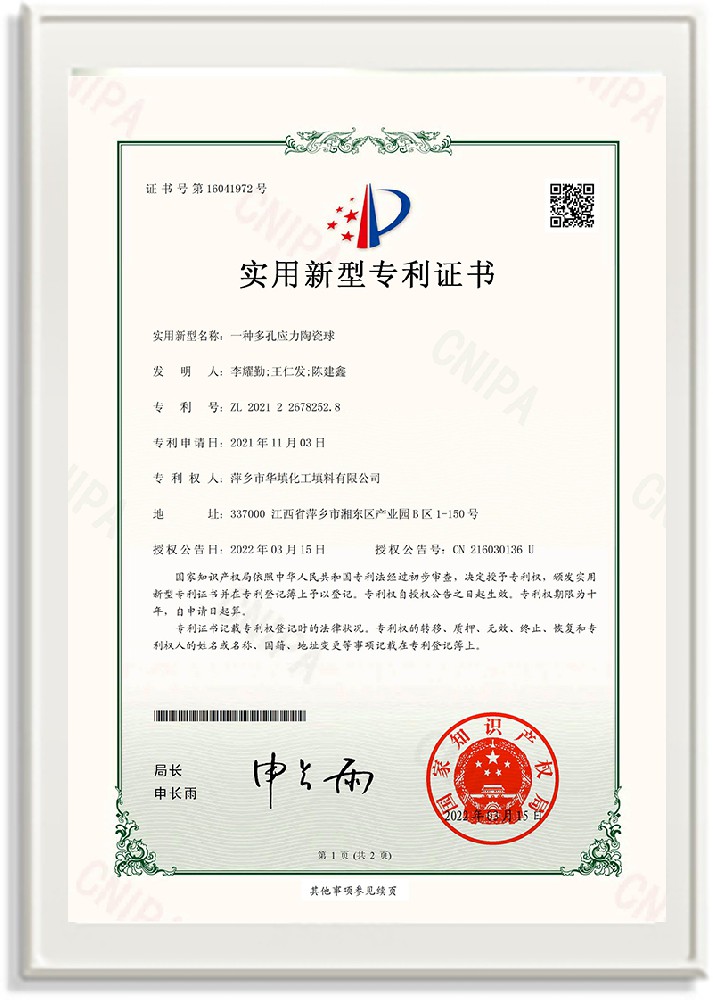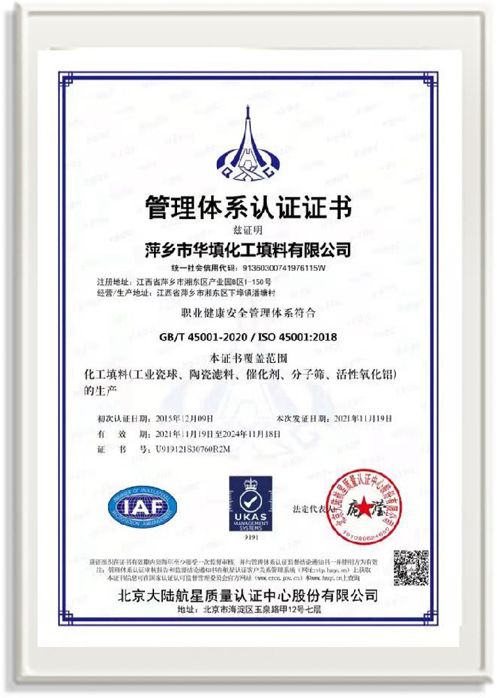 萍鄉(xiāng)市華填化工填料有限公司,位于320國道、109國道、浙贛鐵路、昌金高速公路貫穿其中,交通便利,是江西西部一顆燦爛明珠,創(chuàng)建于20世紀70年代初期,是中國石油天然氣股份有限公司“能源一號網(wǎng)”會員企業(yè)、中國石化物資采購電子商務(wù)網(wǎng)絡(luò)和中國海洋石油總公司采辦業(yè)務(wù)系統(tǒng)成員單位,是上海大學江西材料基因組工程產(chǎn)業(yè)研究院工業(yè)陶瓷產(chǎn)業(yè)創(chuàng)新聯(lián)盟基地,且通過ISO9001:2015質(zhì)量管理體系、ISO14001:2015環(huán)境管理體系、ISO45001:2018職業(yè)健康安全管理體系認證的化工填料生產(chǎn)企業(yè)。公司擁有陶瓷、塑料、金屬填料、催化劑、活性氧化鋁、分子篩等產(chǎn)品生產(chǎn)線,現(xiàn)有固定資產(chǎn)3616萬元,占地面積3.8萬平方米。公司具有悠久的生產(chǎn)歷史、雄厚的技術(shù)力量和先進的生產(chǎn)工藝設(shè)備,可生產(chǎn)工業(yè)瓷球(支撐劑)、陶瓷、金屬、塑料質(zhì)的規(guī)整、散堆化工填料及分子篩、催化劑、生化濾料、活性氧化鋁、石化助劑、活性炭、環(huán)保材料、耐火材料等系列的200多種規(guī)格型號產(chǎn)品。